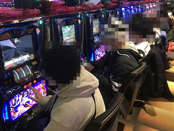 各台に備えられているUSBポートを利用している光景もみられ、快適に遊技をおこなえる環境において有意義な時間を過ごせている様子。