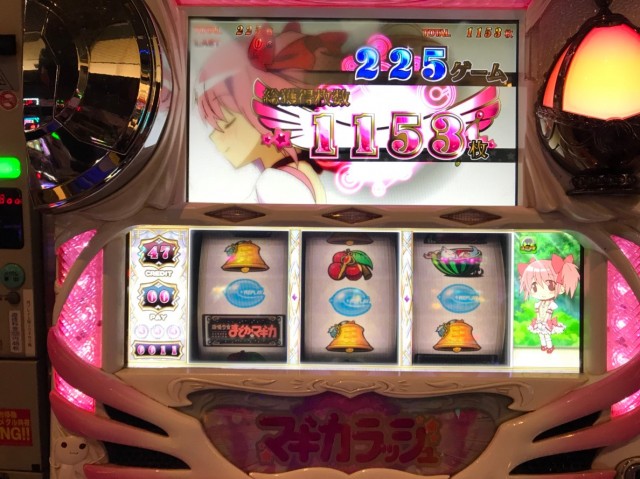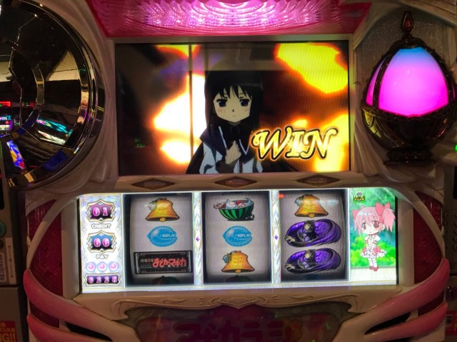 次に打つ台は何かないかと探していると、『SLOT魔法少女まどか☆マギカ』の90Gヤメをみつけたので、200Gのゾーンだけ狙おうと思ったら、191Gでいきなりカーテン、リプレイで白フラッシュ…。