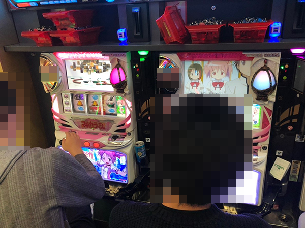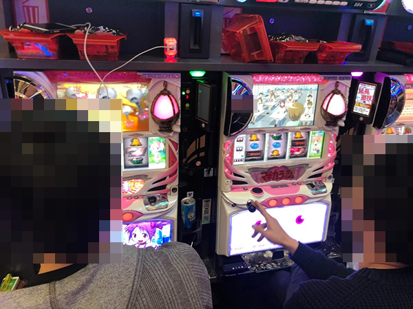 ホール全体が大盛況となっているなかで、ひときわ目立っていたのが「SLOT魔法少女まどか☆マギカ」だ。