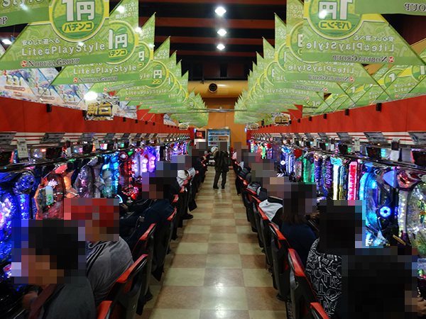 1円パチンコも盛況となっており、空き台も少ない。