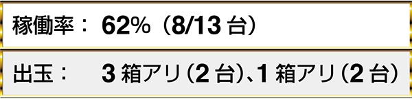 『沖ドキ!-30』と『バジリスク~甲賀忍法帖~絆』では、遊技をおこなっているプレイヤーの半数以上が1箱を超える出玉を獲得していた。