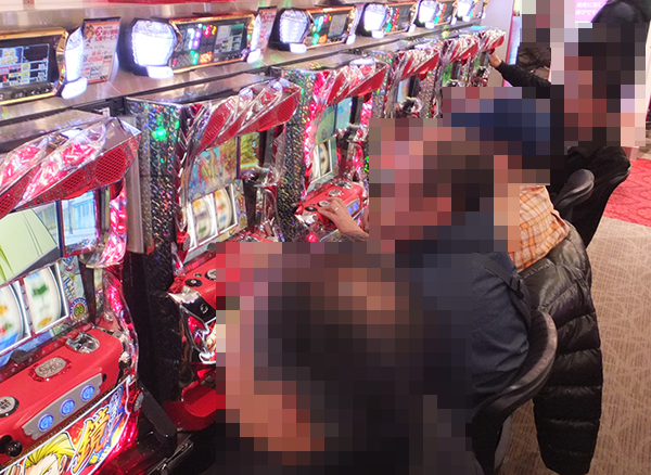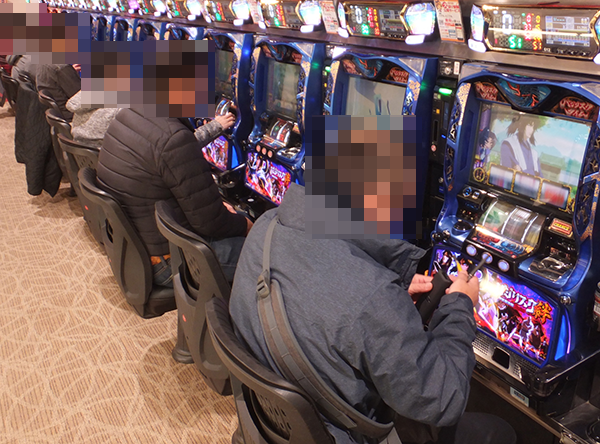 朝イチは20円パチスロで遊技をはじめている姿が多数。