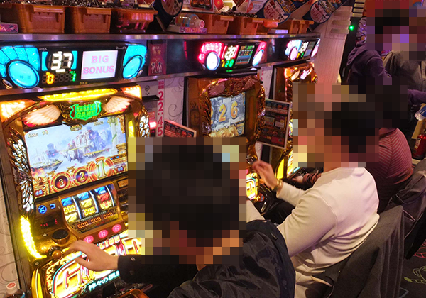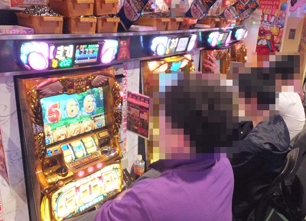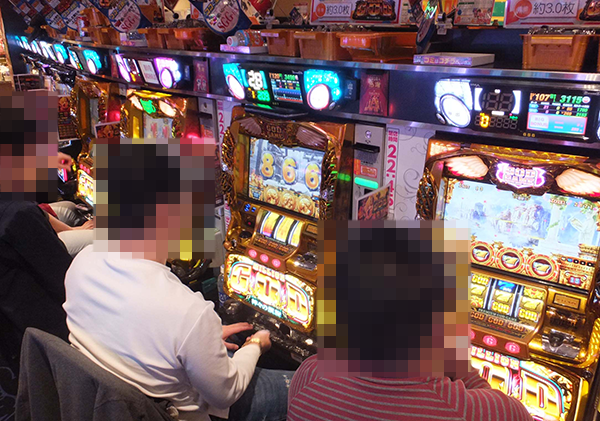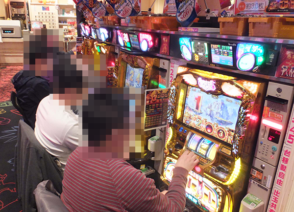 パチスロコーナーをのぞいてみると、機種やスペックを問わずに、さまざまな場所がにぎわっていた。