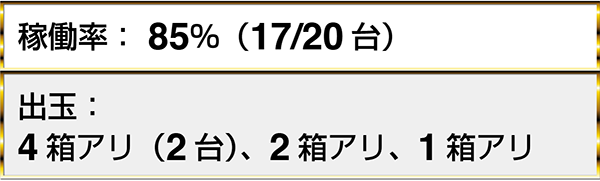 確認時にもっとも多かった出玉は『バジリスク~甲賀忍法帖~絆』と『沖ドキ!-30』の4箱。