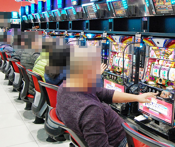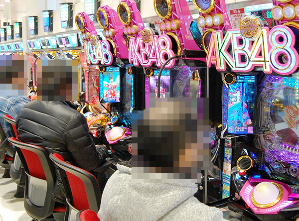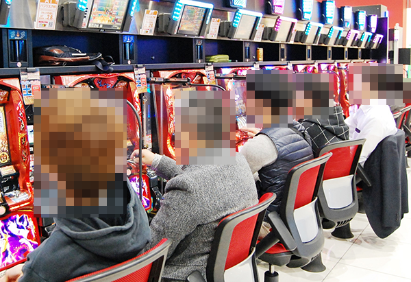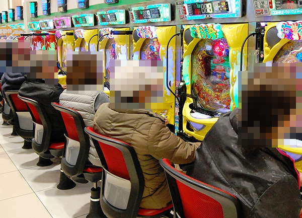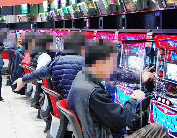 ほぼ満席となっている「バジリスク~甲賀忍法帖~絆」や「ミリオンゴッド-神々の凱旋-」なども活況。うれしそうな表情でハンドルを握っている姿からは、充実した時間を過ごしていることも伝わってきた。