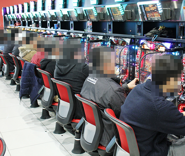 前日と同様に、たくさんのプレイヤーが来店。パチンコとパチスロのどちらも盛り上がっていた。