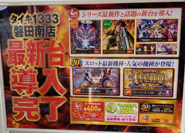 状況を見れば一目瞭然でしたが「タイキ1333磐田南店」さんで打つときは、まず新台を視野に立ち回りましょう。