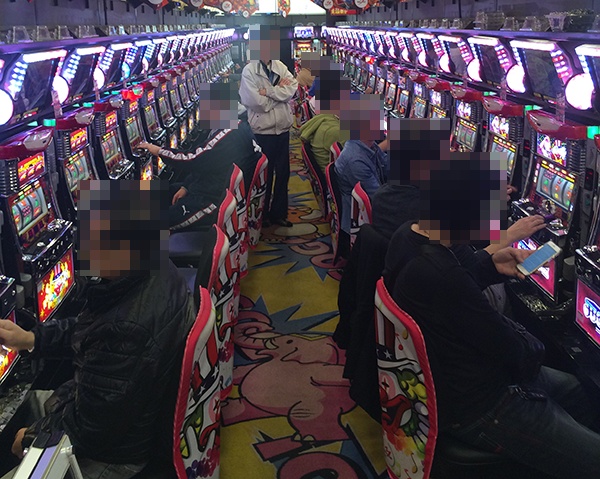 「ハナビ」やジャグラーシリーズなどのボーナスタイプの機種もにぎわっており、あちこちで笑顔のプレイヤーをみることができた。