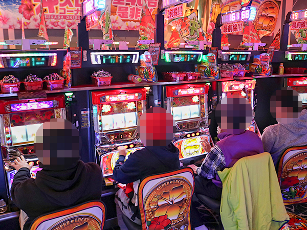 店内には老若男女を問わずプレイヤーが集合。パチンコ・パチスロの各シマから活気が感じられた。