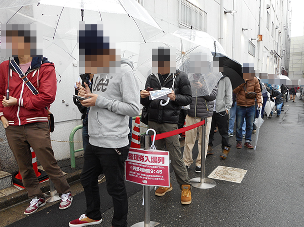 開店前は雨が降っていたが、それでも入場抽選には80名を越えるプレイヤーが参加。開店時間になると、一般入場を含めて90名以上が入店していった。