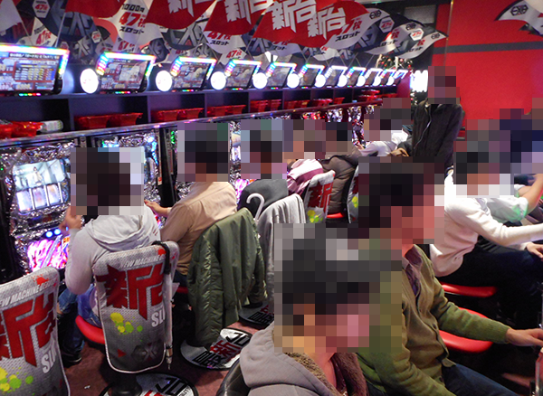 気軽に遊べる5円パチスロのコーナー全体から伝わってくる活気も大きい。