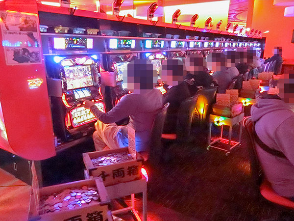 20円パチスロを見渡すと、「アナザーゴッドハーデス-奪われたZEUSver.-」や「ミリオンゴッド-神々の凱旋-」で理想的な展開を迎えたプレイヤーが多く、シマ全体に華やかな光景が広がっていた。