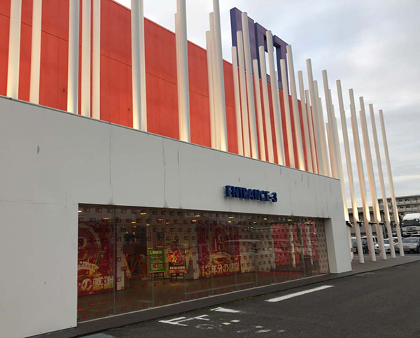 オレンジ色の外壁を白いポールが囲んでいる鮮やかな外観も特徴的なホールだ。