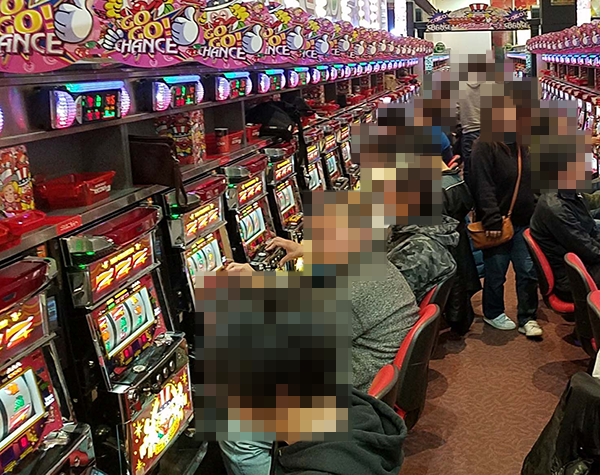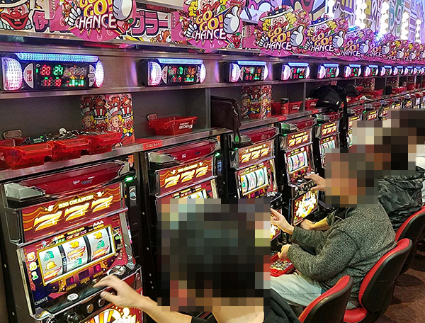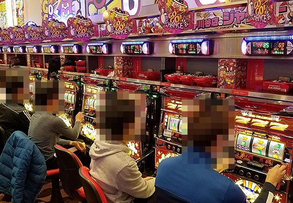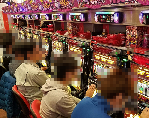「アイムジャグラーEX-AE」のみならず、多くの場所で楽しそうに遊技をおこなう姿がみられた。