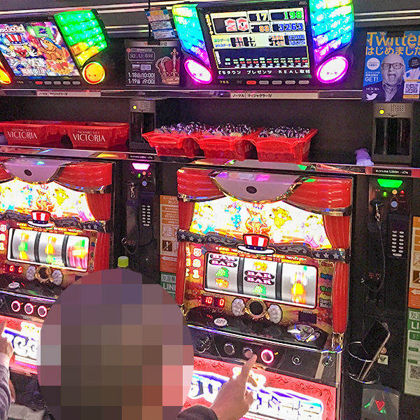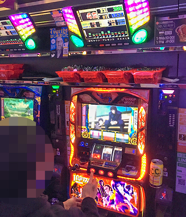 1000円/176枚パチスロの支持も厚い。プレイヤーたちが楽しそうにレバーを叩く姿を目撃している。