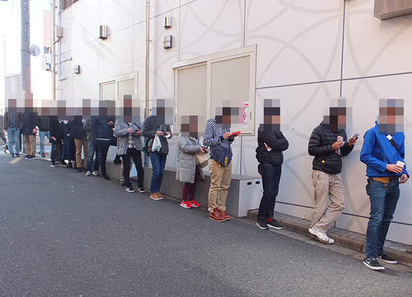 取材日となった1月5日の開店前には、30名以上のプレイヤーが集合。開店時間にあわせて来店する姿もみられた。