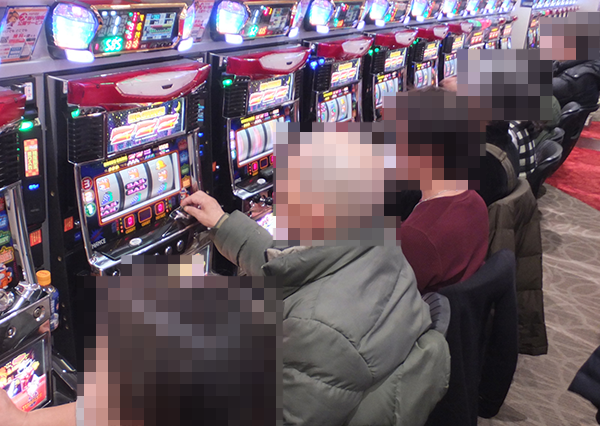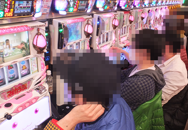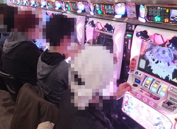 開店直後の20円パチスロをみると、「SLOT魔法少女まどか☆マギカ」や「SLOT魔法少女まどか☆マギカ2」など、多数の機種が満席となっていた。