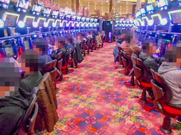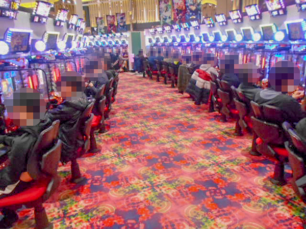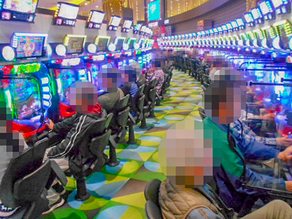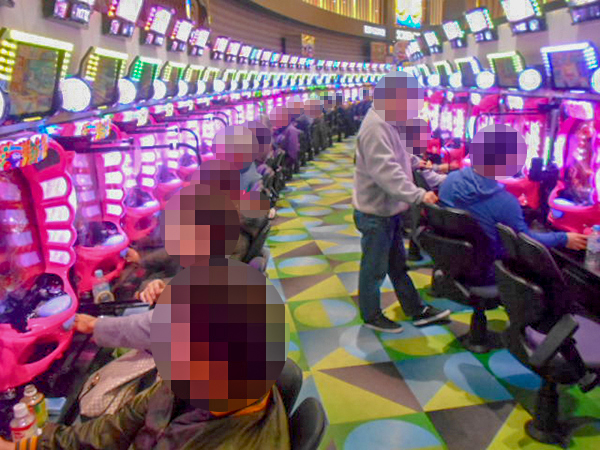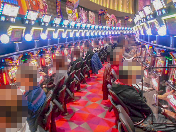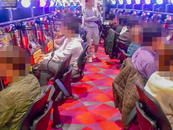 機種構成が魅力的な1000円/190枚パチスロを見ると、ほぼ満席となるほどの支持を得ていた。