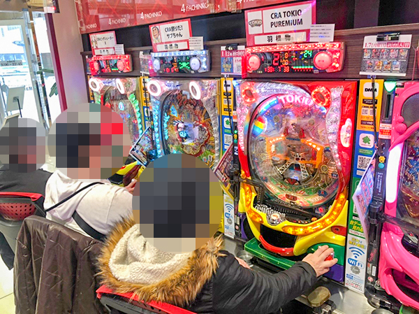 14時半ごろの4円パチンコを見ると「CRAトキオプレミアム」や「CRA祭りだ!サブちゃん」が盛況の様子。華麗なパフォーマンスを披露するプレイヤーの姿をそこかしこで目撃している。