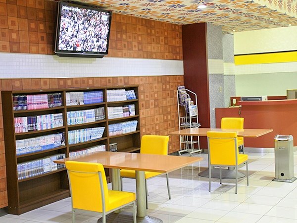同店には広々としたレストスペースが用意されており、漫画本やテレビを見ながらのんびりと休息をとることができる。