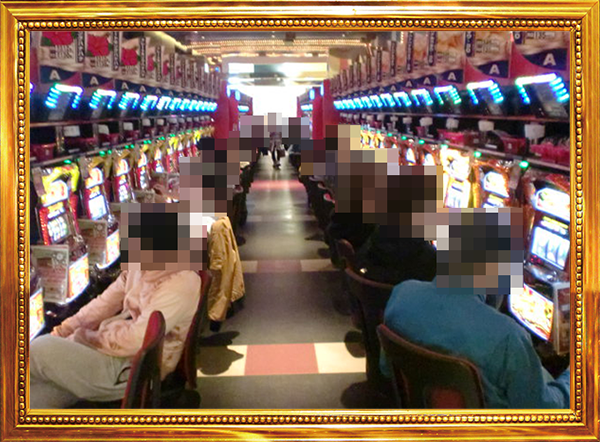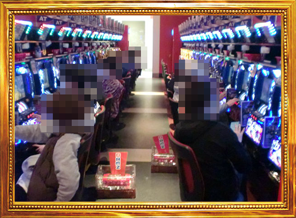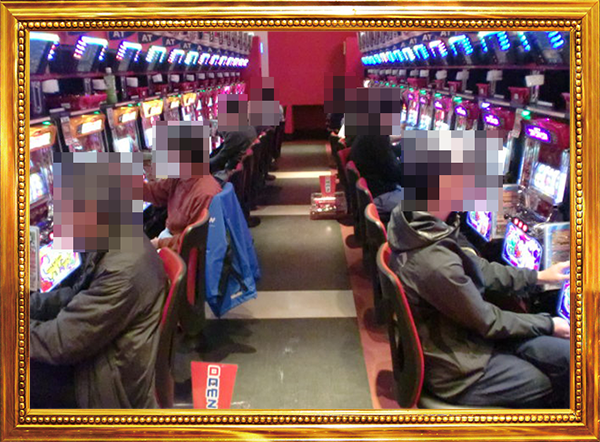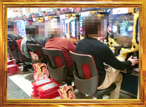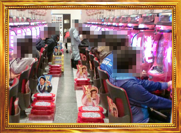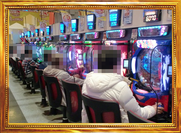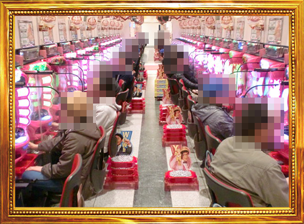 1円パチンコと0.5円パチンコの2種類があるパチンコの低貸し玉コーナーもにぎやかなムード。