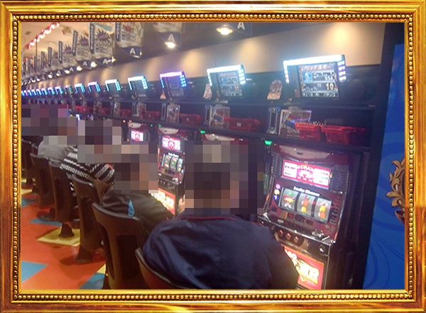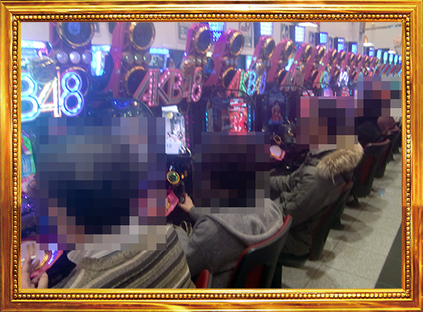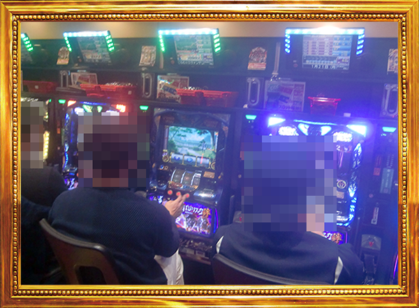 ほかにも、「ゴーゴージャグラー」や「パチスロディスクアップ」などに、笑みを浮かべてレバーを叩いている姿があった。