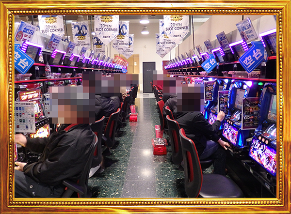 14時をまわった頃の20円パチスロをみていくと、多くのプレイヤーがパフォーマンスを披露していた。