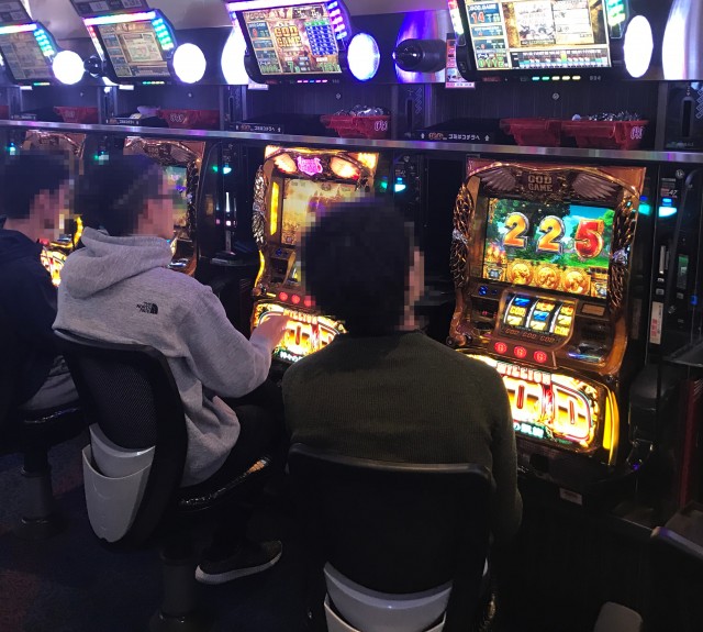 稼働している台は、ほとんどGOD GAMEのランプがついており、眩しい!