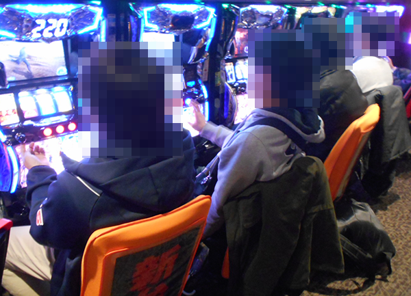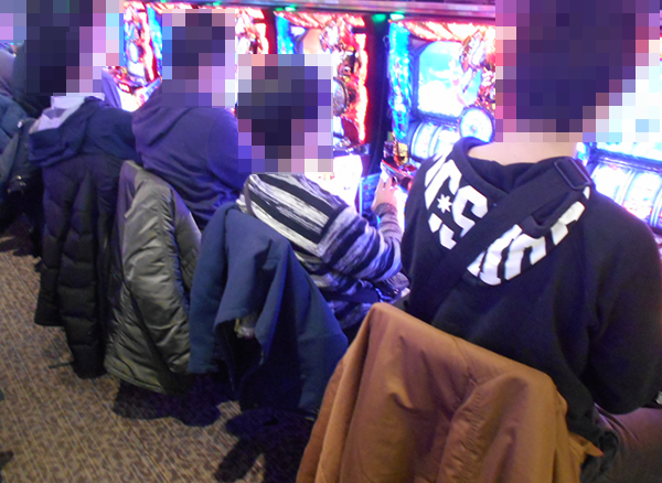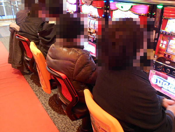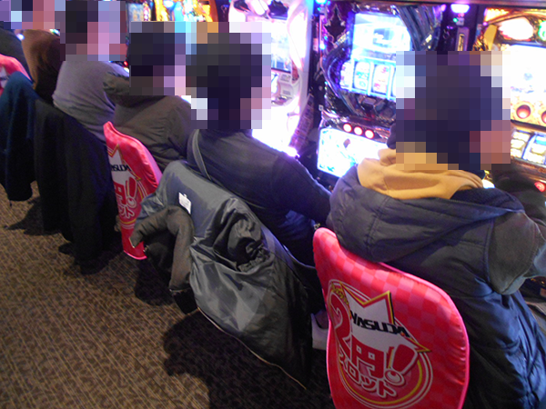 午後の20円パチスロをみると、「パチスロ聖闘士星矢 海皇覚醒」が満席。プレイヤーたちがイキイキとレバーを叩いている光景は壮観であった。