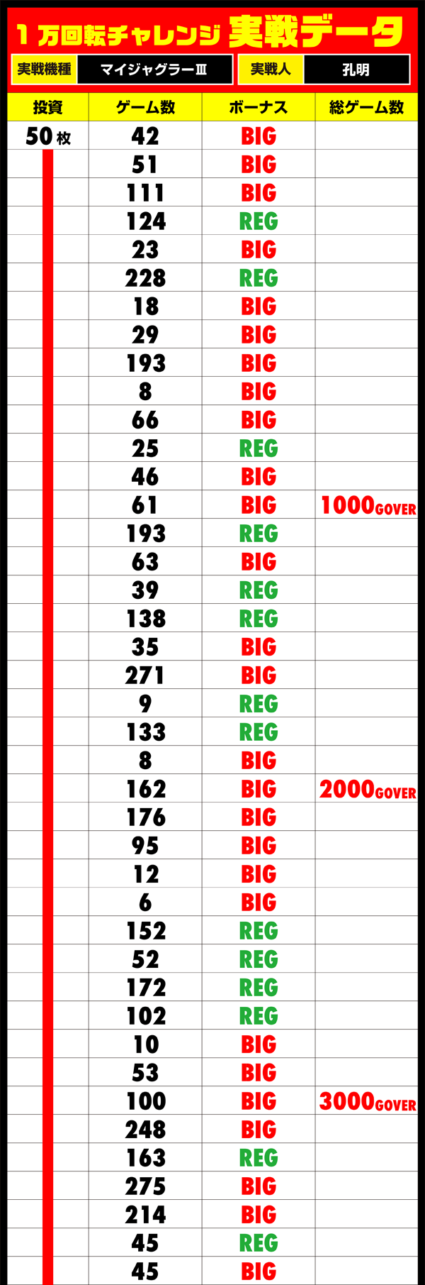 ボーナスの連打に苦戦しているようだが、気合いを込めてレバーを叩き続け、1万回転にむけて最後まで頑張ってほしい!