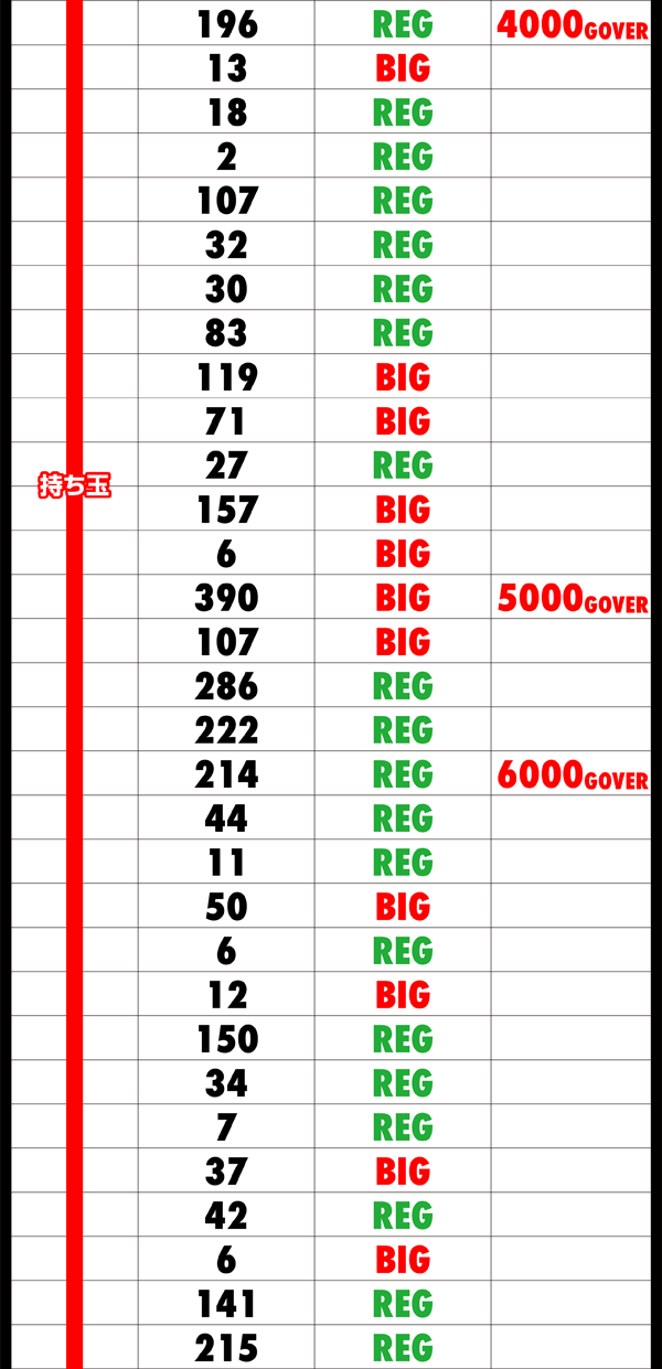 お昼を過ぎた頃になっても、ボーナスを獲得するペースは落ちず、スランプグラフは勢いよく上昇。15時までには、BIGとREGをあわせた回数が40回を超えていた。