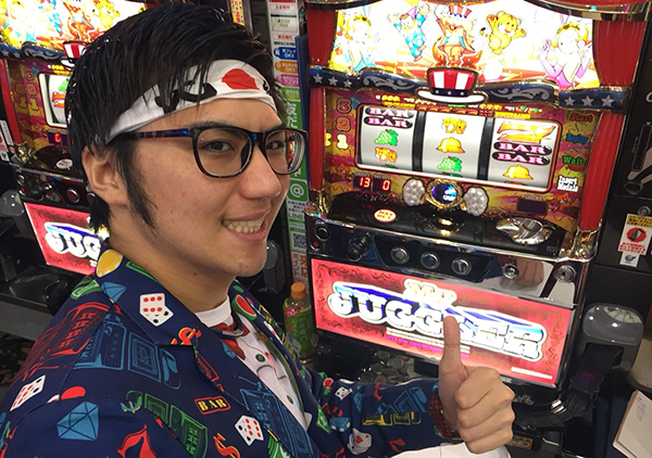実戦機種に選んだ「マイジャグラーⅣ」を確保してからは、ゲーム数がひと目でわかるボードを設置。はるか遠くの1万回転に到達するために、全力でレバーを叩け!