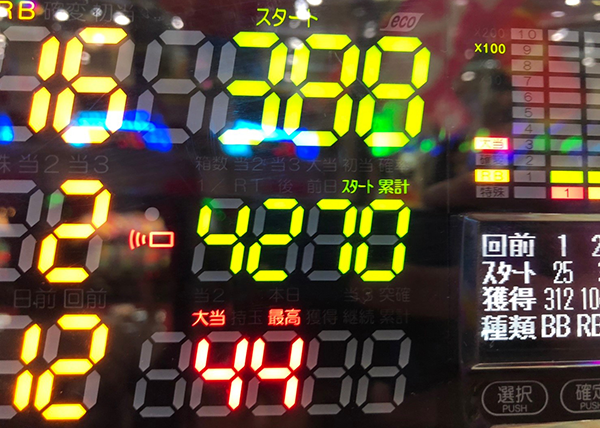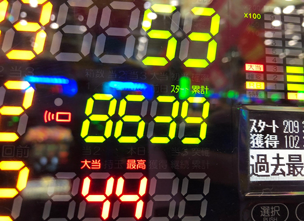 9時オープンといったアドバンテージを活かし、序盤からどんどんゲーム数を稼いでいく。12時頃に2100Gを通過すると、15時頃には4200Gを突破。レバーを叩くスピードはそこまで速くはないものの、1万回転到達には十分なペースだ。