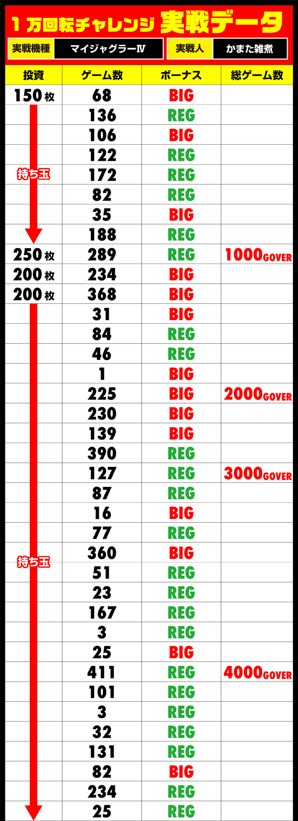制限時間内に1万回転に到達! さらには、達成後もレバーを叩いて短いゲーム数で2回のBIGを獲得!!