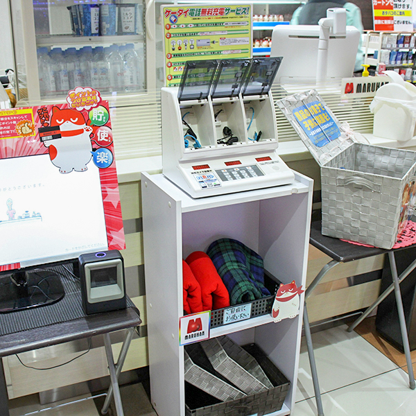 店内には携帯充電器やブランケットなど、プレイヤーが快適に遊技を楽しめるよう、かゆい所に手の届くアイテムが揃っている。