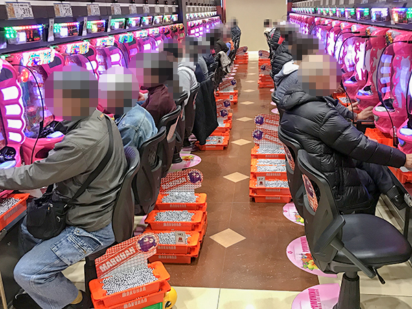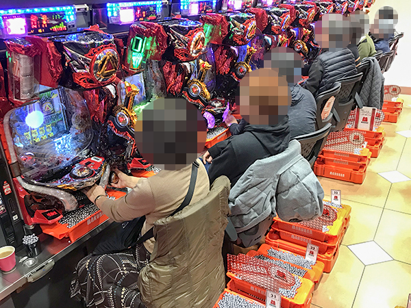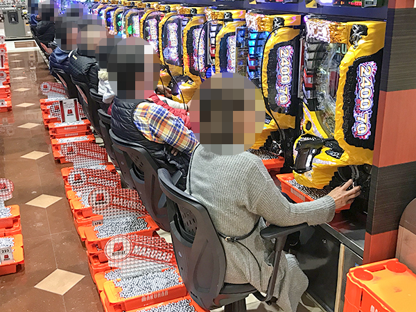 取材時の店内には既に多くのプレイヤーが集結し、パチンコ・パチスロを問わずにぎやかな状況となっていた。