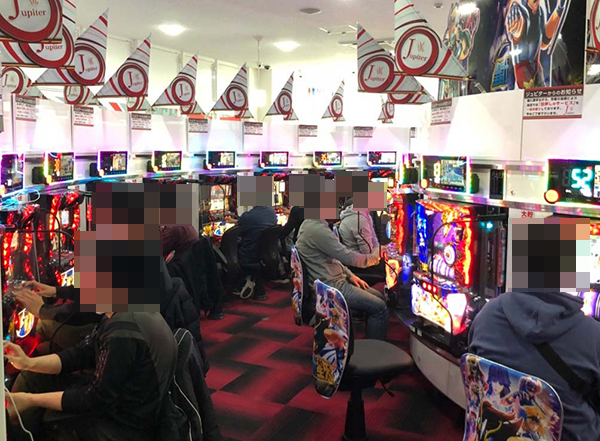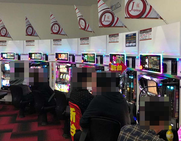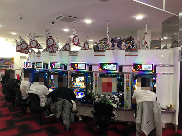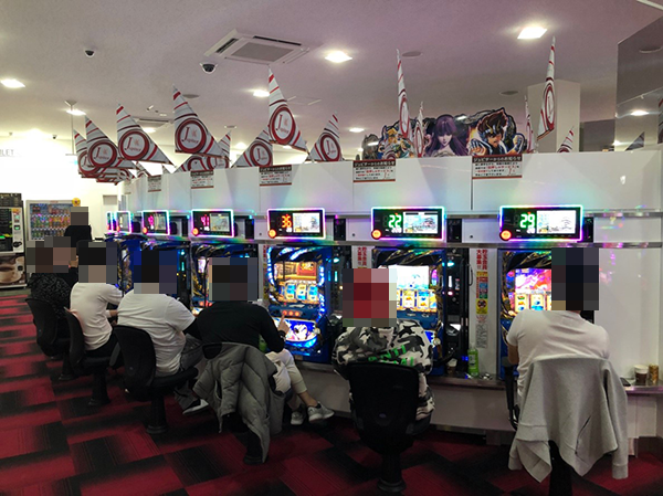 1階でパチンココーナーのにぎわいを確認して2階にあるパチスロコーナーに上がると、さまざまな機種でプレイヤーの笑顔がみられた。