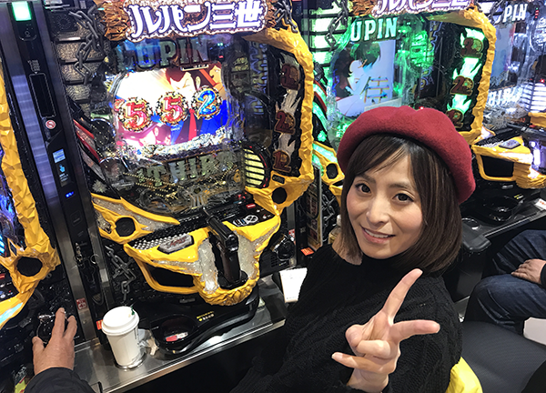 この日は「CRルパン三世〜LAST GOLD〜」の過去最高大当り38回に挑戦。遊技台の上にプロフィールを書いた色紙を飾り、自己アピールをする気も満々だ。