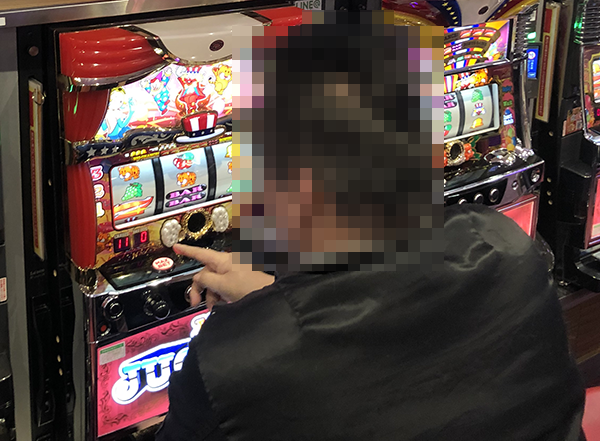 さまざまなジャグラーシリーズが並べられているシマに、合計で4台設置。2台ずつに分かれて置かれており、3台が稼働していた。