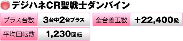 3台中2台がプラスで全台差玉数が+22,400発と、遊パチらしい安定感だけでなく、この機種ならでは出玉力も見せてくれた。