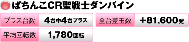 実に4台すべてがプラスで、しかも全台差玉数が+81,600発という素晴らしい結果に。