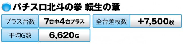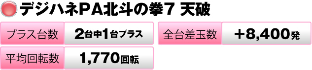 ちなみに、この日に導入されたシリーズ初の設定付きパチンコ『デジハネPA北斗の拳 天破』も、台数こそ少ないが、全台差玉数+8,400発を記録している。