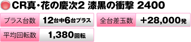 12台中6台がプラスで、全台差玉数は+28,000発と、今回もよく傾いてくれた。