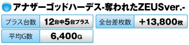 プラス台数は12台中5台だが、全台差枚数が+13,800枚とかなり優秀。