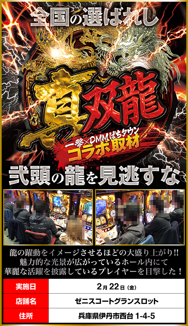 「真双龍」の舞台となったのは、400台以上の遊技台が設置され、機種ラインナップの豊富さも魅力的なパチスロ専門店「ゼニスコートグランスロット」だ。