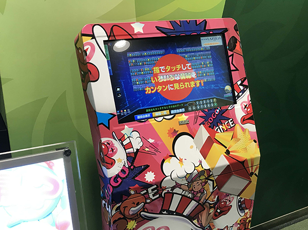 タッチパネルのデータ表示機があり、ホール内を歩きまわらなくても各台のデータをチェックすることができる。立ち回る際に利用できるなど、とても便利なイメージを受けた。