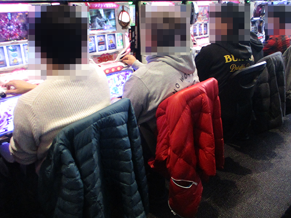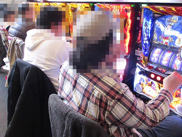 朝イチのパチスロをみると、「SLOT魔法少女まどか☆マギカ」や「バジリスク~甲賀忍法帖~絆」、新台の「パチスロ 聖闘士星矢 海皇覚醒Special」など、さまざまな機種が満席。
