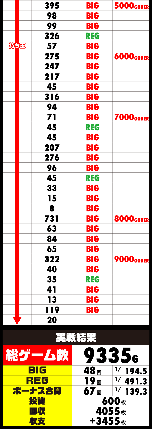 終盤も必死にレバーを叩き、ゲーム数を重ねていったが、9300Gを突破したところで無念のタイムアップとなった。