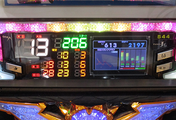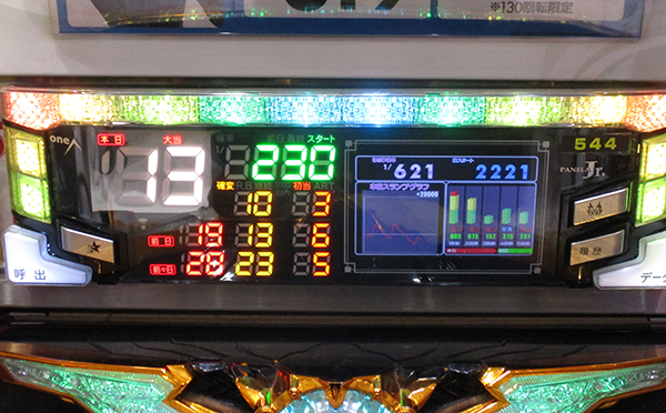674回転目でようやく大当りを引いたものの、時刻はすでに18時。己越え達成はかなりキビしい展開だ…。