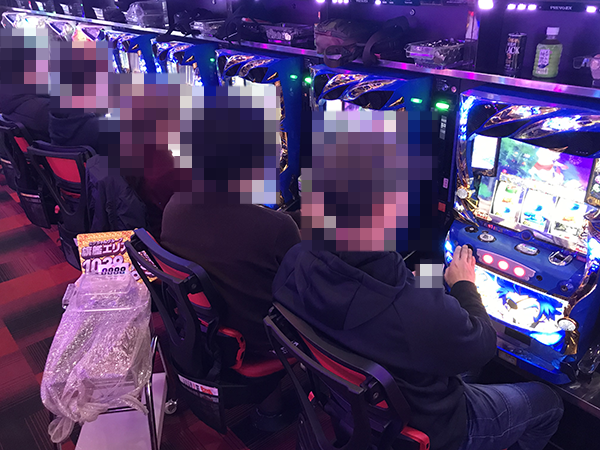 大勢のプレイヤーが来店しているホール内において、とくに明るい雰囲気が感じられたのはパチスロコーナー。